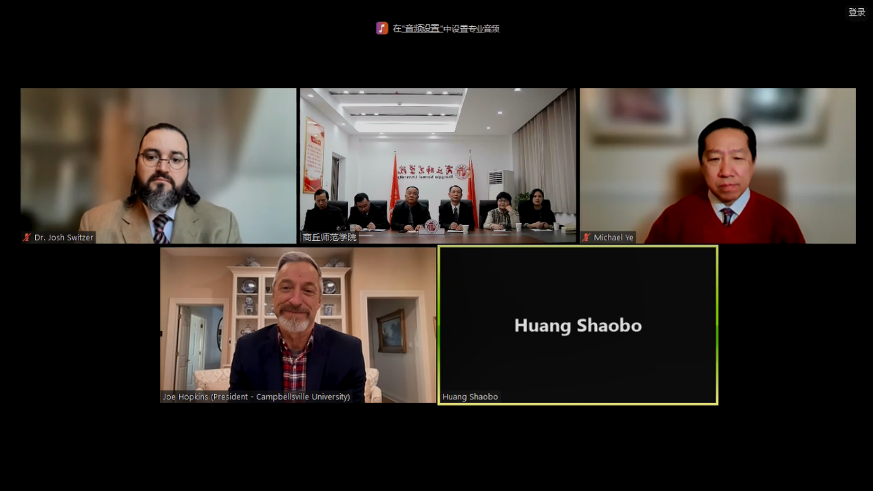 1月17日,我校与美国康博斯威尔大学(Campbellsville University)举行了中外合作办学线上视频交流会,我校副校长张箭,康博斯威尔大学校长约瑟夫·霍普金斯、副校长约书亚·斯威策等出席了此次视频会议。