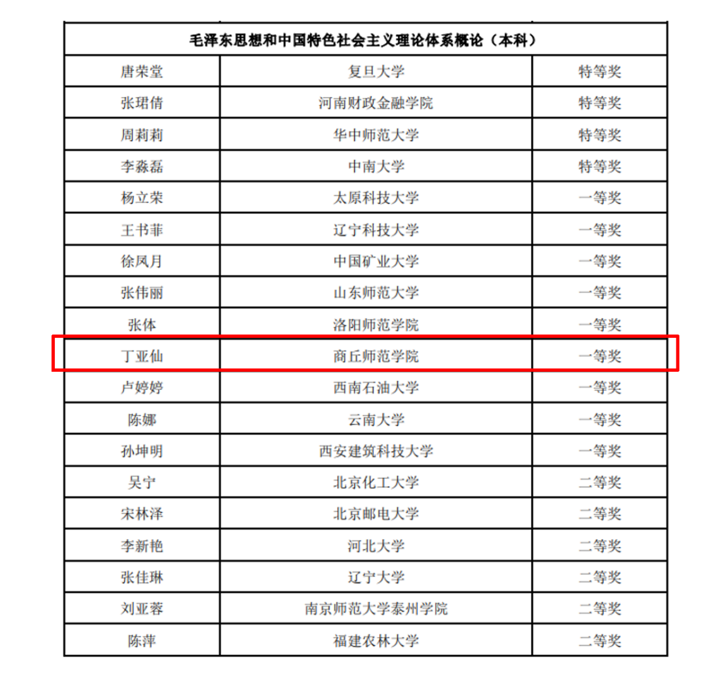 近日,教育部公示第三届全国高校思想政治理论课教学展示活动评审结果,我校马克思主义学院教师丁亚仙喜获一等奖。