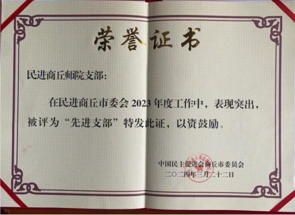 2024年3月23日,中国民主促进会商丘市委员会召开了2023年度先进支部和优秀会员的表彰大会。