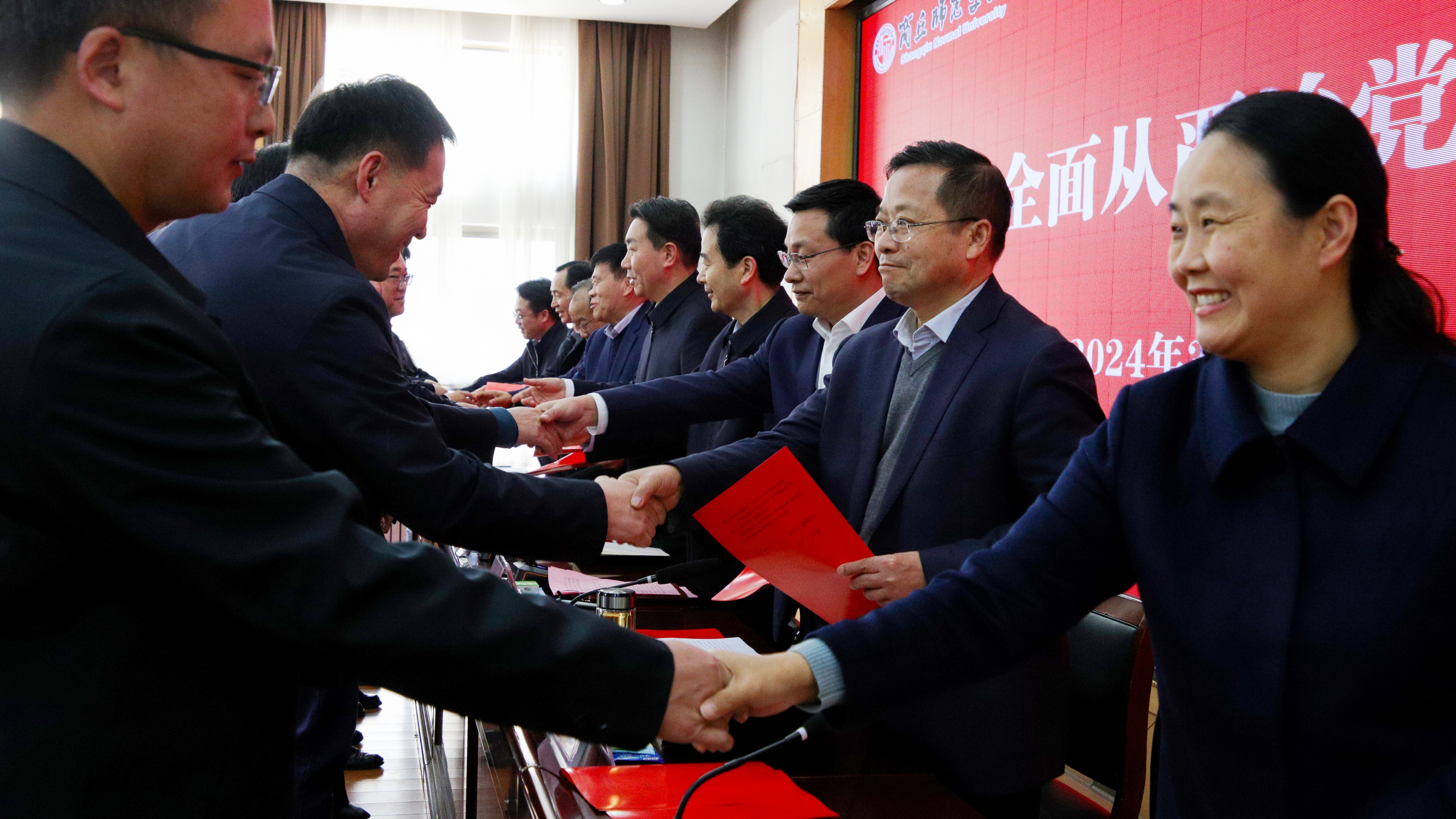 我校全体中层干部参加了会议。会上,二级学院党委书记、校直单位负责人代表向校领导递交了《2024年党风廉政建设责任书》。