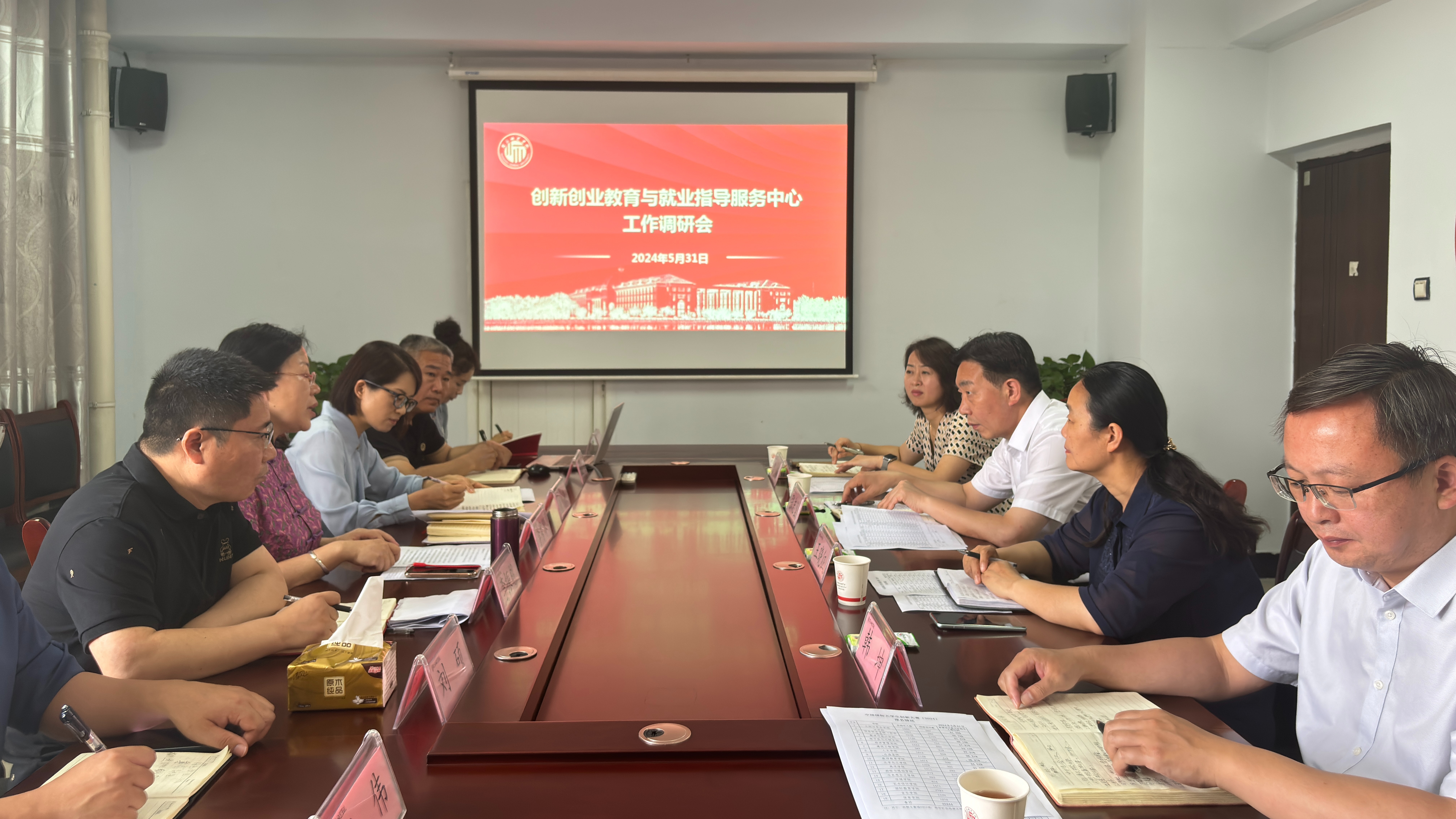副校长王晓征,党政办公室、学工部负责同志,创新创业教育与就业指导服务中心全体人员参加调研。