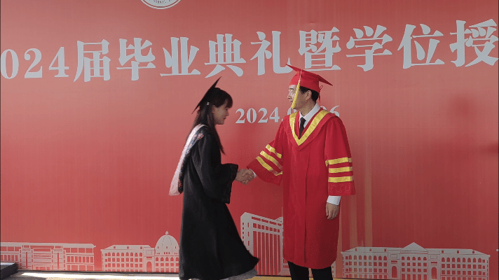 6月6日,我校举行2024届毕业典礼暨学位授予仪式。校领导张志坚、陈向炜、吴金山、何瑞强、郭文佳、程功鹏、张箭、王晓征、翟滨出席典礼。校学位评定委员会成员、校直有关部门和各学院领导、校友代表、家长代表、教师代表、毕业班辅导老师及全体2024届毕业生参加毕业典礼。副校长郭文佳主持典礼。