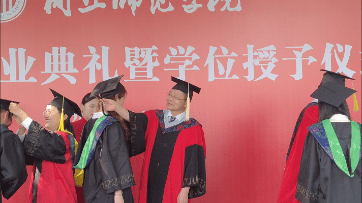 党委副书记吴金山为毕业生拨穗正冠、颁发学位证书