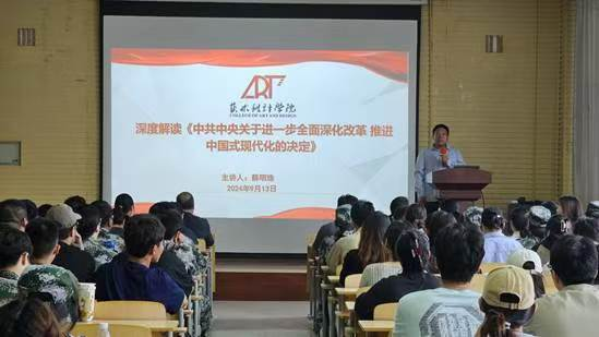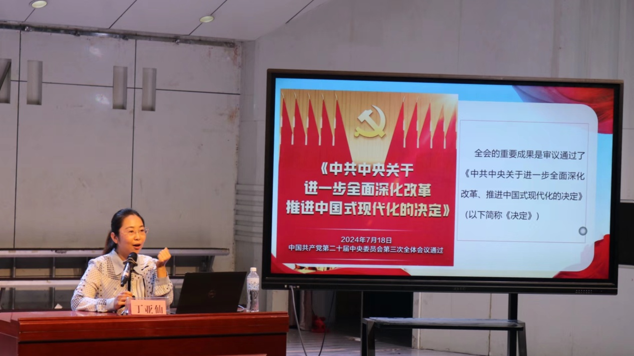 9月29日,副校长王晓征以《学习贯彻党的二十届三中全会精神在进一步全面深化改革、推进中国式现代化中担当作为》为题,为机关党委、离退休职工管理处党委科级及以下党员干部宣讲党的二十届三中全会精神。