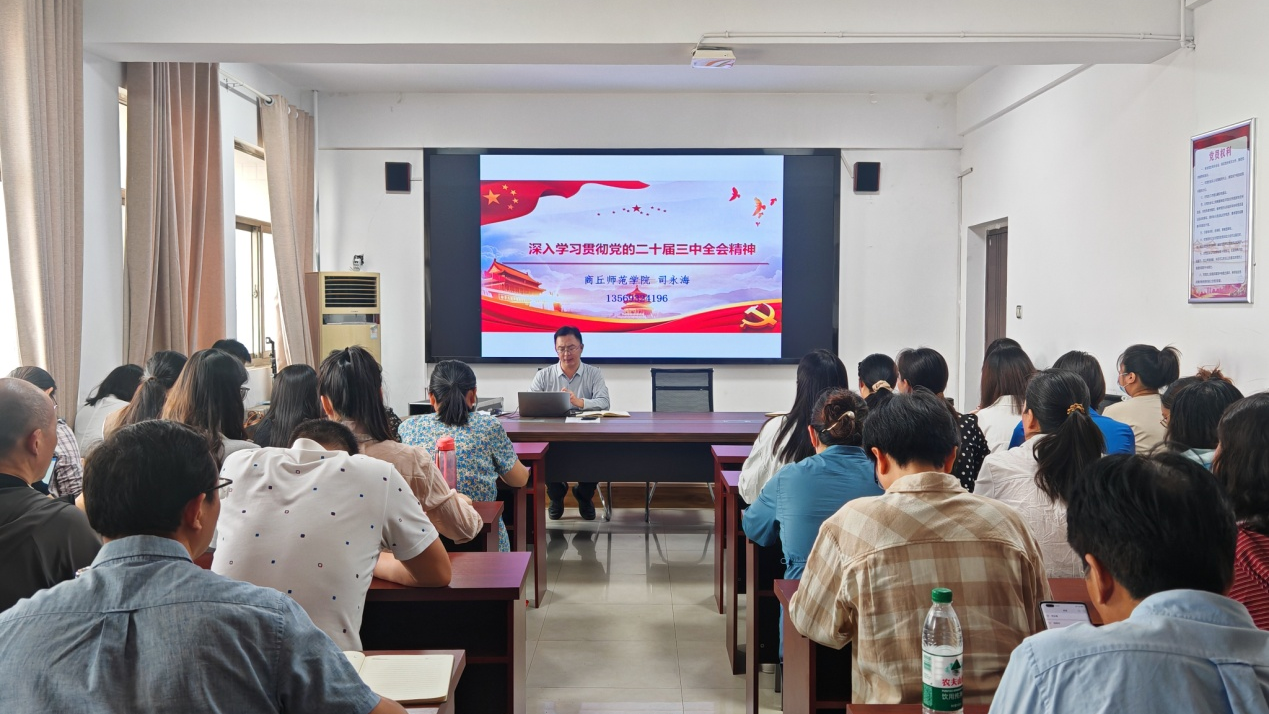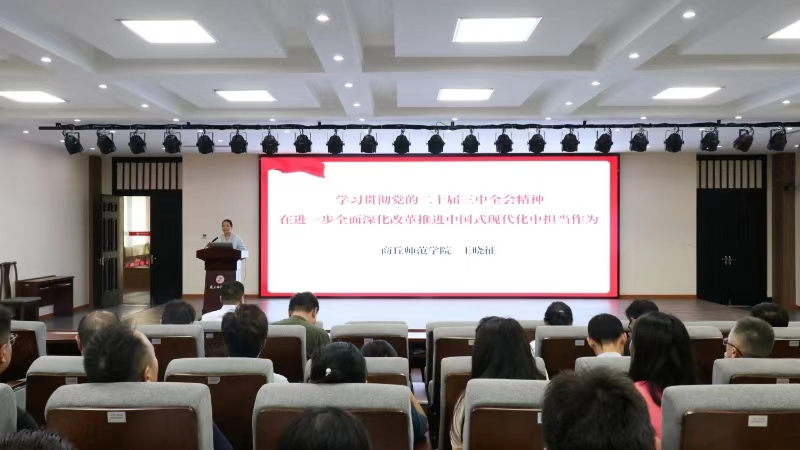 按照校党委《关于做好学习贯彻党的二十届三中全会精神宣讲工作方案》要求,校级宣讲团成员、党委宣传部部长冉祥华,党委学工部部长韩坤,马克思主义学院党委书记龚志宏、院长司永海、院副院长丁亚仙,习近平新时代中国特色社会主义思想概论教研室主任刘志筠,思想政治教育系主任薛明珠,马克思主义基本原理教研室主任孙国栋,博士谢敏振等学校宣讲团成员,根据校党委统一部署和要求,分别深入到各教学学院和基层单位开展宣讲活动。