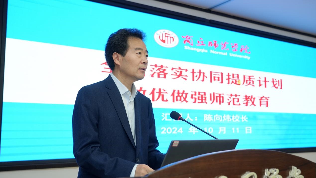 陈向炜汇报了教育部师范教育协同提质计划实施以来,我校在师范教育人才队伍建设、人才培养与学科专业建设、教育硕士专业学位授权点建设、服务基础教育、学校管理与服务能力建设等方面取得了丰硕成果,为我校擦亮师范教育底色、做优做强师范教育奠定了良好基础。